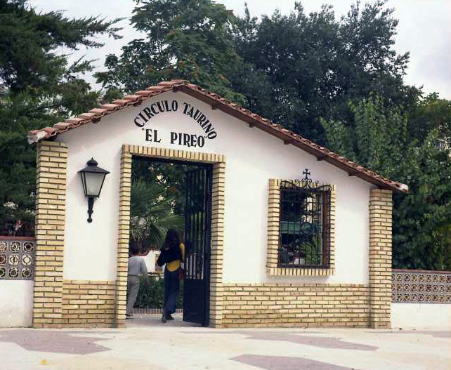La Feria de Alcalá en estos años no tenía portada tal como ocurría en otros recintos de capitales andaluzas y pueblos grandes. Servía de puerta de entrada la Fuente de los Álamos. No obstante, las casetas, se esmeraban cada año en lograr una portada exquisita. Entre las más logradas y llamativas siempre estuvieron las portadas de la “Caseta El Pireo”. Las hubo de inconfundible estilo andaluz con ladrillo visto y reja, de mampostería blanca y mural, y de un estilo neoclásico de dudoso gusto.