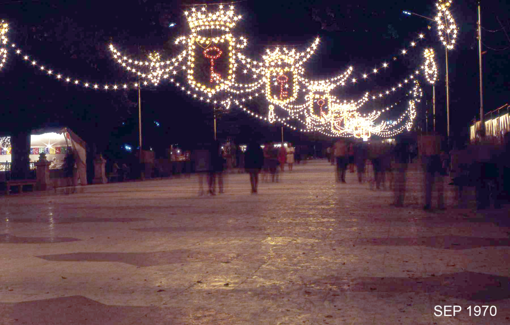 El año 1974, el día 20 de septiembre a las once de la noche se anunciaba la revisión de las instalaciones de la feria (alumbrado y casetas) por la Excelentísima Corporación Municipal. Tenemos aquí el inicio de la prueba del alumbrado.