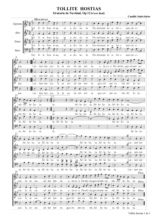 10. Coro: “Tollite hostias” para coro mixto, órgano y cuerdas.