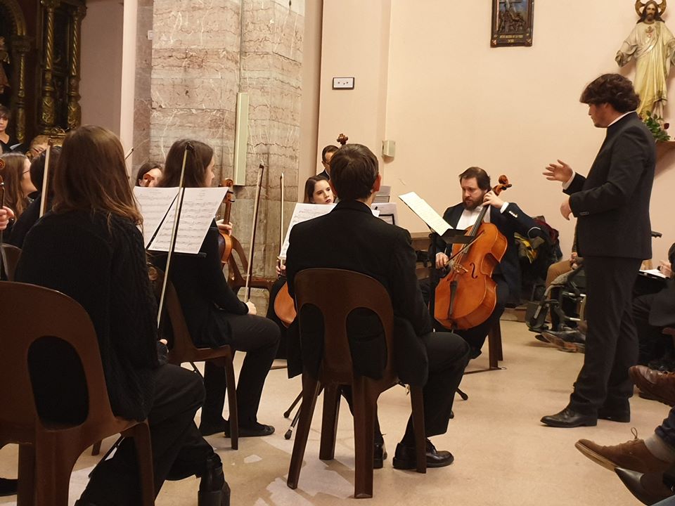 Hoy estuvieron presentes en Arriondas ocho violines, tres violas, dos cellos y un contrabajo, puesto que para este proyecto no se requerían instrumentos de viento metal, madera ni percusión.
