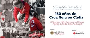 Tenemos el placer de invitarle a la jornada de ponencias que, con motivo de 150 aniversario de Cruz Roja en Cádiz, se celebrará en el Ateneo de Cádiz (c/ Ancha 20), el próximo 13 de diciembre 2023 a partir de las 19.00 horas.