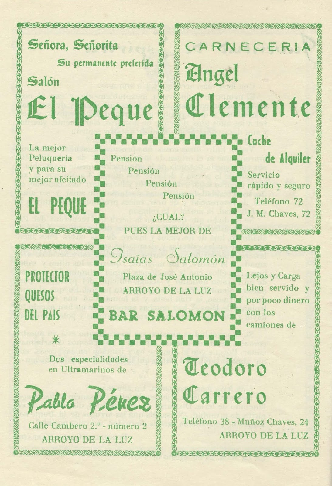 Pero especialmente, ¿cómo no hacer mención de todas las empresas, autónomos con sus tiendas, bares, tabernas y pequeñas firmas, la mayoría familiares? Me vienen a la mente los electrodomésticos de Bañegil, o la carpintería de Niso. El cine de Solano con sus películas infantiles de los domingos por la tarde, aquel cine “interactivo” del que ya hablamos en su momento. Los bares de Carrasco, Moyano, Bañegil o Marciano y sus exquisitos bacalaos. También recordamos la relojería de Alberto Palacín. La pescadería de Rufino Serrano y la frutería de Eutiquio con su carro al que le hubiese gustado subir a alguno de nosotros.