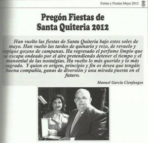 Hace diez años, invitado por el Ayuntamiento, siendo alcaldesa Mary Cortés, pude transmitir a los naveños lo que significan las fiestas de su Patrona, Santa Quiteria, junto a la devoción que le profesan. Fiestas de las que hay referencias en el siglo XVI. En La Nava de Santiago llegan días para el culto a la convivencia gozosa, la amistad colectiva, la diversión y el baile, porque la alegría es una necesidad y no un capricho. (22 de mayo, Santa Quiteria. Fiestas en La Nava de Santiago).