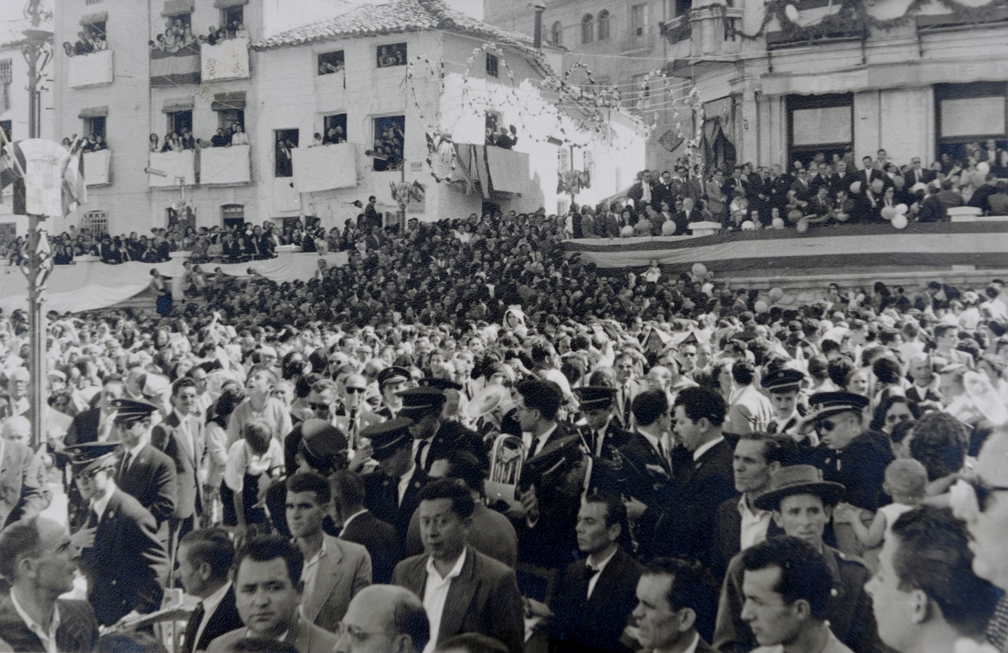 Se organizó la procesión de traslado de Santísima Virgen hasta la Plaza del Generalísimo. Formaron las señoritas de Acción Católica, con trajes negros y tocadas de mantilla, banderas de las Asociaciones, pendón de la Cofradía, clero secular y regular, cabildo catedralicio, autoridades y la Santísima Virgen, sobre sus andas,