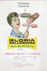 En el programa de las Fiestas Patronales de 1966, apareció este anuncio de la Gloria Mallorquina  de Mateu Rosselló Villalonga. Su tienda estaba situada en la calle «Comerç» y era conocida bajo el malnombre de Cas Grassos. Tuve el placer de conocer a casi todos ellos y en especial a Pedro y Jaume.