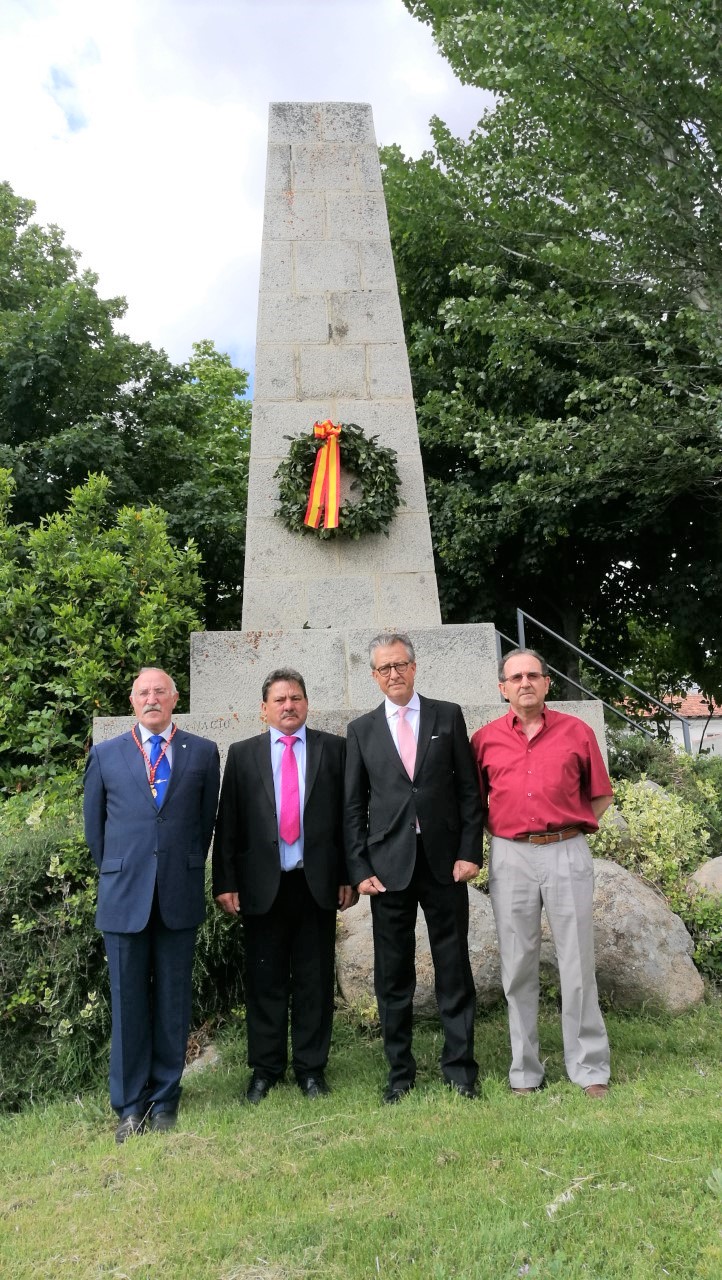 Frente al monumento a Fray Antonio de Villacastín. a los lados los cronistas oficiales de Villacastín (izquierda) Rafael Alvarez, a la derecha Juan Jesús Diez, el alcalde de la localidad y el arquitecto homenajeado.