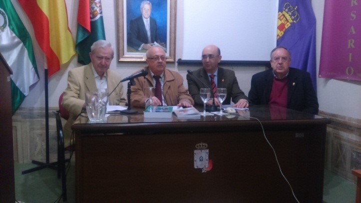 Mesa presidencial formada por Antonio Rivas Morales. Apolonio Carabaño Jiménez. José Manuel Troyano Viedma y Guillermo Sena Medina (Casa de Jaén en Granada. 9/III/2017. / Fotografía de Dolores Chicharro Caballero)
