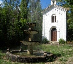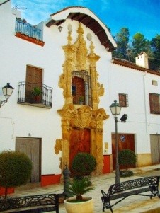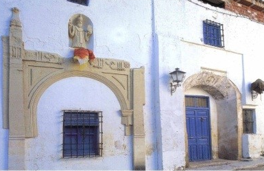 10.- Fachada del Convento de los Basilios del Barranco de Cazalla entre los términos de Cambil y Los Carcheles, de la orden de San Basilio Magno, cuya imagen aparece en la hornacina y en detalle. Fue erigido en 1561 y fue el 2º convento de la orden “ora et labora” en España.