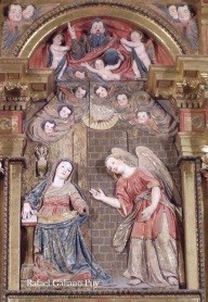 -Tabla central sobre la Anunciación, sobre la cual se encuentra la tabla del Calvario.