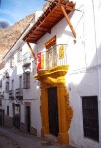 -Portada de la Casa del Condestable de finales del S. XVIII -(1760-1770)-, de influencia del Hospital de Cambil, con un exuberante barroco –rococó-. Su portada adintelada, está enmarcada por pilastras cajeadas de orden dórico que sustentan un entablamento y cornisa convexos con un escudo en el centro. Sobre ella un balcón con rejería convexa y flanqueada por dos escudos nobiliarios, rompiendo así con la línea decorativa de la planta baja.