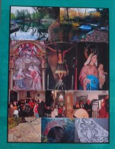 -Portada y contraportada del libro que presentamos bajo el título: Cambil. Último baluarte nazarí en tierras de Jaén. Geografía. Historia y Patrimonio. En la portada destaca su escudo oficial junto a la figura del Hijo Predilecto y Cronista Oficial de las villas de Cambil y de Arbuniel, desde 2010 y 1981, respectivamente, D. Vicente Oya Rodríguez (Cambil, 8/XII/1937-Beas de Segura, 10/VIII/2016) y en cuyo Homenaje he escrito este libro, el cual ha sido presentado en su pueblo natal por D. Guillermo Sena Medina, Cronista de La Carolina, D. Miguel Ángel García, Alcalde de la Villa y un servidor el pasado 25/II/2017, con motivo del Homenaje Nacional que se le tributó en su villa natal a título póstumo, con gran éxito de público y un resultado extraordinario. En la contraportada he querido representar, a modo de puzle, algunos de los aspectos socio-culturales y patrimoniales del Municipio de Cambil-Arbuniel, tales como el nacimiento del río Arbuniel; el estanque de Mata Begid; la tabla central del Retablo que Sebastián de Solís realizó en el S. XVII para la parroquia de la Encarnación, sobre la Anunciación; Cuadro del Cristo del Mármol, Patrón de la Villa; la imagen de la Virgen del Rosario; tres imágenes sobre la popular fiesta de la Tamborá (7-8/XII). Desde el punto de vista paleontológico aparece una fotografía de las huellas de un reptil de la familia de los Arcosaurios, unos animales omnívoros de entre 2 y 5 metros; Puente romano en el camino de Arbuniel-Cambil-Huelma y Montejicar; fragmento de cerámica árabe, donde se aprecia la representación de la “mano de Fátima”. Eso no quita de que en las imágenes que proyectaremos a continuación nos volvamos a reencontrar con algunas de ellas debido a que conforman algunos de los rasgos más característicos de este Municipio, inmerso en unos paisajes de una belleza sin igual, tal y como pudieron apreciar miembros de esta Casa que giraron una visita a Sierra Mágina en 2002 invitados por la Excma. Diputación Provincial de Jaén.