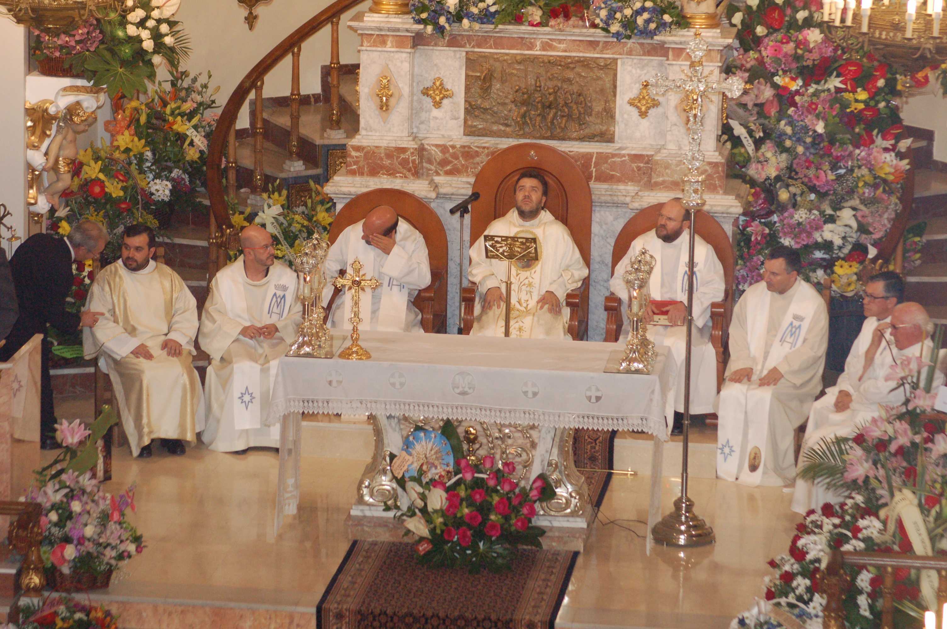 Presididos los actos por don Luís Joaquín Molina Mestre Mestre, dio principio a la celebración de a ofrenda floral, donde tomaron parte las Damas de la Virgen; falleras mayores con sus cortes de honor; asociaciones religiosa y culturales y fieles en general, terminando la cofradía de la Virgen, los presidentes de la cofradía patronal, Antonio Sancho y Ana Luisa Andrés y el Ayuntamiento de la ciudad, representado por la vice alcaldesa, Isabel Aguilar.