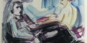 En esa ocasión yo me refiero, entre otras cosas, a la figura humana, que “expresa con gran cantidad de técnicas: carbón, lápices, aguada, tinta china, acuarela y óleo”.