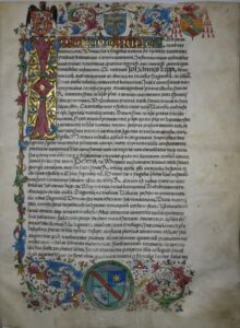 Como podéis ver en la primera de las imágenes que os mostramos, este Colegio fue fundado en el año 1476 en Sigüenza (Guadalajara) por Juan López de Medina, arcediano de Almazán de la Catedral de Sigüenza y canónigo de la Catedral de Toledo. Este Colegio, bajo el patrocinio del cardenal Pedro González de Mendoza, se instituyó como monasterio y casa de estudios bajo la advocación de San Antonio “presbyteri et confessoris de Porta Celi”. Las primeras constituciones de este Colegio fueron publicadas en el año 1484. Es en este momento cuando os preguntaréis por qué tenemos una copia manuscrita de estas constituciones en nuestro archivo.
