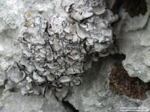 En mis caminatas por la Sierra L´Aramo y sus estribaciones de la vertiente oriental riosana, tuve ocasión de localizar en los troncos de árboles de cierta corpulencia, situados en zonas sombrias y húmedas este líquen tan característico conocido como ARZOLIA (Parmelia caperata L.). Me llamaba la atención su forma circular y su color gris verdoso, agarrado a la corteza. A día de hoy su denominación científica ha pasado a ser (Flavoparmelia caperata). Sin embargo, un día, cuando entraba en el Valle L´Abeduriu (Riosa), procedente del Valle Los Veneros (Quirós), antes de llegar a Campareonda y en una zona en la que existe un pequeño laberinto de rocas muy cerca del sendero, divisé este liquen sobre la roca caliza en una parte sombría y humeda que me llamó poderosamente la atención. Se parecía al que había visto en troncos de arból pero había aspectos que lo diferenciaban. En primer lugar, el color, no era gris verdoso, era de un color gris claro, que se mimetizaba con el color de la propia roca caliza; tenía lóbulos anchos y redodeados con márgenes rizados ribeteados de negro, con la superficie rugosa y mate; su forma no era circular como el que había visto en algunos troncos de árbol.