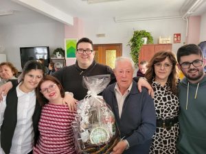 Inauguración de las reformas del Aula Respiro de la Asociación de Personas con Discapacidad «Los Jilgueros», homenaje a José Valdivia, fundador y miembro más veterano de la asociación, y entrega del dinero (921 euros) recaudado en el sorteo de la cesta de la «XIX Fiesta de la Matanza», con productos donados por los bares valdepeñeros.