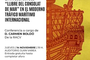 Será este jueves 14 de noviembre a las 19 horas en el Auditorio Juan Varea, donde la doctora Carmen Boldó impartirá esta charla sobre este tema histórico. Con entrada gratuita hasta completar aforo, se presentará la conferencia de la influencia del «Llibre del Consolat de Mar» en el moderno tráfico marítimo internacional.