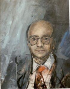 El retrato fue un regalo que me hizo mi familia, con motivo de la concesión del premio «ENTREGA A GETAFE» otorgado por el periódico «Acción Getafe». Es obra del pintor Moisés Rojas, gran amigo con el que he tenido el honor de colaborar y participar en multitud de actividades y proyectos organizados y desarrollados por la Asociación Cultural la «Nueva Gran Piña» que formamos juntos, Manuel de la Peña q.e.p.d., José Luis Vázquez, Francisco Cuesta, Julián Puerto, César Navarro, Miguel Sacristán, Domingo Gil, Pedro García, y creo que puede olvidar a algún otro.