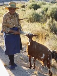 En la fotografía, aparece Juana González Jiménez, nacida el 27 de mayo de 1932 en la localidad abulense de Navalosa. A sus 93 años, 92 cuando la fotografía fue presentada al citado concurso, Tía Juana sale al campo cada día con su pequeño rebaño de cabras sin importarle que llueva, nieve, caliente el sol, haga frío o calor.