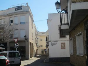 En ella estuvo el Matadero. Desde la esquina de la derecha, donde aparece el retablo cerámico de la artista montijana Elvira Quintana, en 1885, comenzaron en dirección a la carretera de la Puebla a edificarse las casas sobre el charco del Moro, que luego se nombraría calle de Alonso Rodríguez. El arquitecto de la Diputación, Ventura Vaca (1855-1938), siendo alcalde Francisco Rodríguez Cavero, realizó el proyecto para la construcción del Matadero Municipal (aprobado el 27/II/1915) en la calle Virgen de Barbaño.