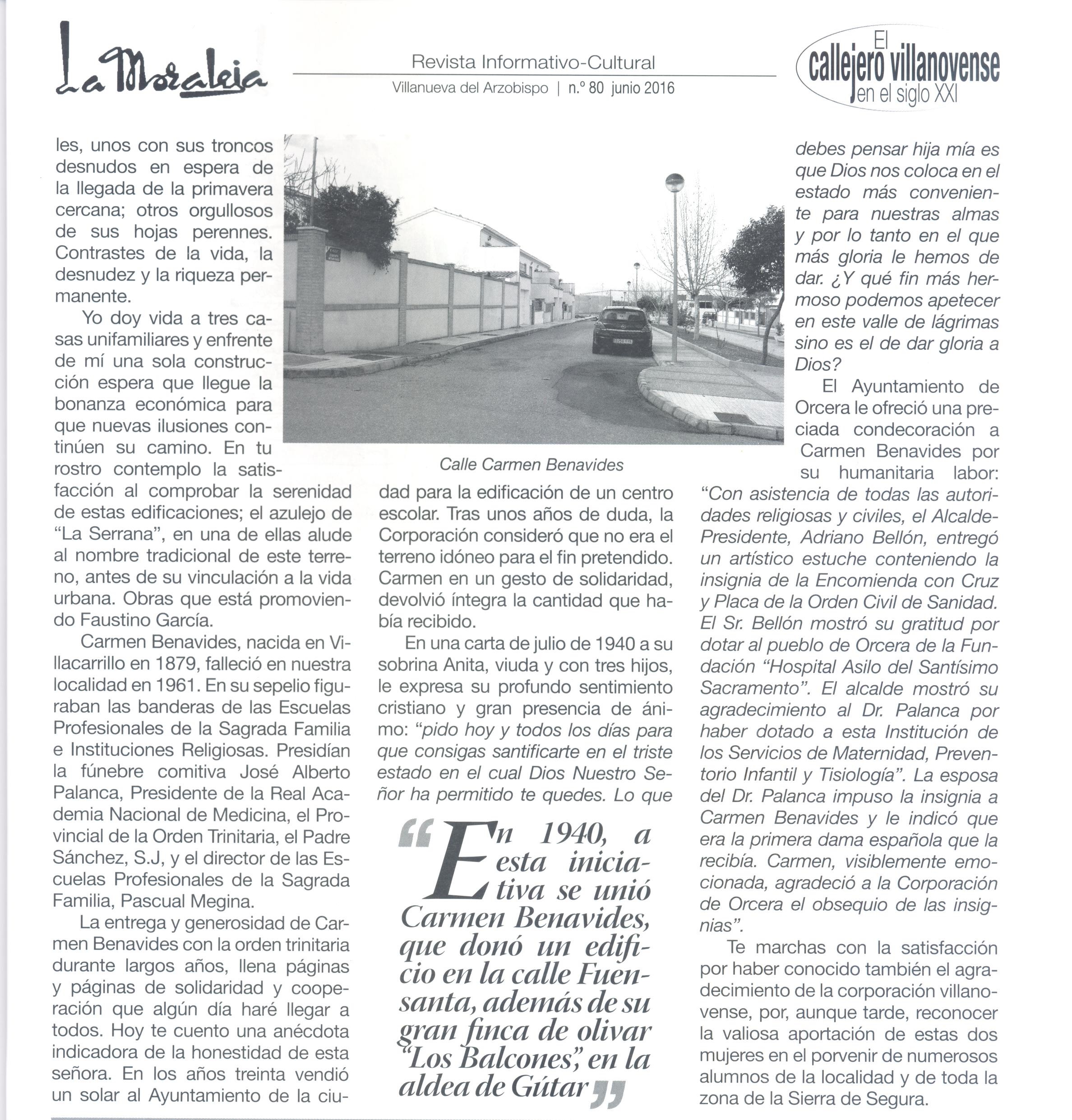 Fuente: Revista LA MORALEJA, número 80. Villanueva del Arzobispo, junio de 2016