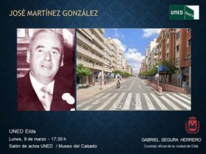 Hoy dentro del curso 2025-2026 programado por la Uned Elda en la oferta de la UNED Abierta vamos a conocer la figura de alcalde de Elda que da nombre a la popular Gran Avenida: José Martínez González (1896-1956) y como su gobierno municipal transformó por completo la Elda de los años 40, sentando las bases de su posterior desarrollo.