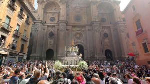 La procesión del Corpus Christi de Granada es el núcleo central de las fiestas mayores de la ciudad de la Alhambra, que tienen una antigüedad de más de cinco siglos, ya que fueron dispuestas por los Reyes Católicos. Por ello, la comitiva religiosa es también un exponente del ámbito civil con las representación de las autoridades públicas de la provincia y del consistorio granadino. Igualmente, al ser fiesta popular de referencia de la ciudad, la procesión va precedida por la Pública, el cortejo pagano presidido por la Tarasca y los cabezudos y gigantes. Este jueves, como cada año, Canal Sur volverá a retransmitir este momento cenital de la fiesta grande de Granada.