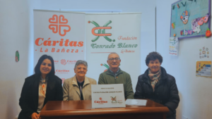 Cáritas U.P.A La Bañeza ha anunciado la continuidad de su programa de apoyo académico para estudiantes de 5º y 6º de Primaria y 1º y 2º de la ESO, gracias a la colaboración fundamental de la Fundación Conrado Blanco. Así se dio a conocer en una reciente rueda de prensa en la que participaron Ceferino, director de Cáritas UPA La Bañeza; Luisa Arias, secretaria de la Fundación Conrado Blanco; Silvia Pan, profesora del programa; e Inmaculada del Peso, directora de Cáritas Diocesana de Astorga.