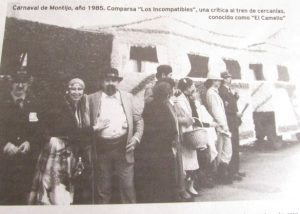 Cuando el maldito virus no existía y el Carnaval inundaba las calles de Montijo de alegría, sátira, ironía y buen humor. Cuando 1983, trajo una buena nevada en Montijo. Concretamente el 11 de febrero para ser exactos. A los pocos días salía el desfile Carnaval que tanto gustaba a quien fue su reina tan popular: Juan Méndez, la Juani. Y en aquel largo desfile participó la comparsa “Los incompatibles”, basada en la ley sobre las incompatibilidades de los funcionarios. Otro año salieron de abejas (por la expropiación de Rumasa), y hasta sacaron un tren por la retirada (año 1985) del tren de cercanías “El Camello”. Extremadura y por ende los extremeños siempre a cuestas con el tren. Uno de sus componentes era Francisco Serrano, que como muestran las fotos, desde siempre sintió, ha sentido y siente pasión por el Carnaval.