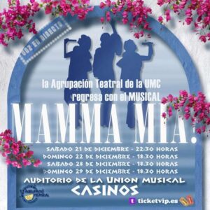 No sé, cómo evadirte. Tú me has provocado, luego me has rechazado ¿Por qué te sigo queriendo así? Mamma mía, ya lo decidí, porque no puedo vivir sin ti”. La Agrupación Teatral de la Unión Musical Casinense no puede vivir sin el arte y vuelve a abrir el telón para presentar todos los temas de la obra consagrada por excelencia que honra los musicales en directo de los últimos tiempos.