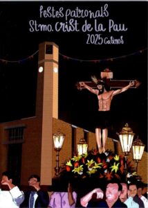 La portada del díptico anunciador es es el cartel ganador del concurso de este año que convocó la cofradía del Santísimo Cristo de la paz junto a los Clavaríos y es la obra presentada por Alicia Murgui Marques, que ha plasmado el momento del final de la procesión, del patrón de Casinos.