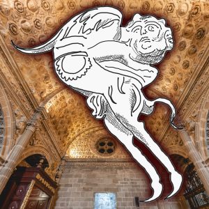 El Sagrario Nuevo, o Sacristía de las Cabezas, en la #CatedraldeSigüenza es un verdadero museo de los grutescos. De la mano de Martin Van Domme pueblan muros, cenefas y enjutas. Este es un dibujo que he hecho de uno de ellos.