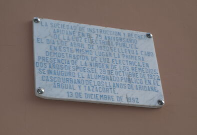 En 1997 por iniciativa de la Real Sociedad Aridane, entre los promotores se encontraba mi persona, se descubrió, en una antigua vivienda de La Placeta, una placa de mármol que recuerda la efeméride del establecimiento de la luz eléctrica pública en Aridane.
