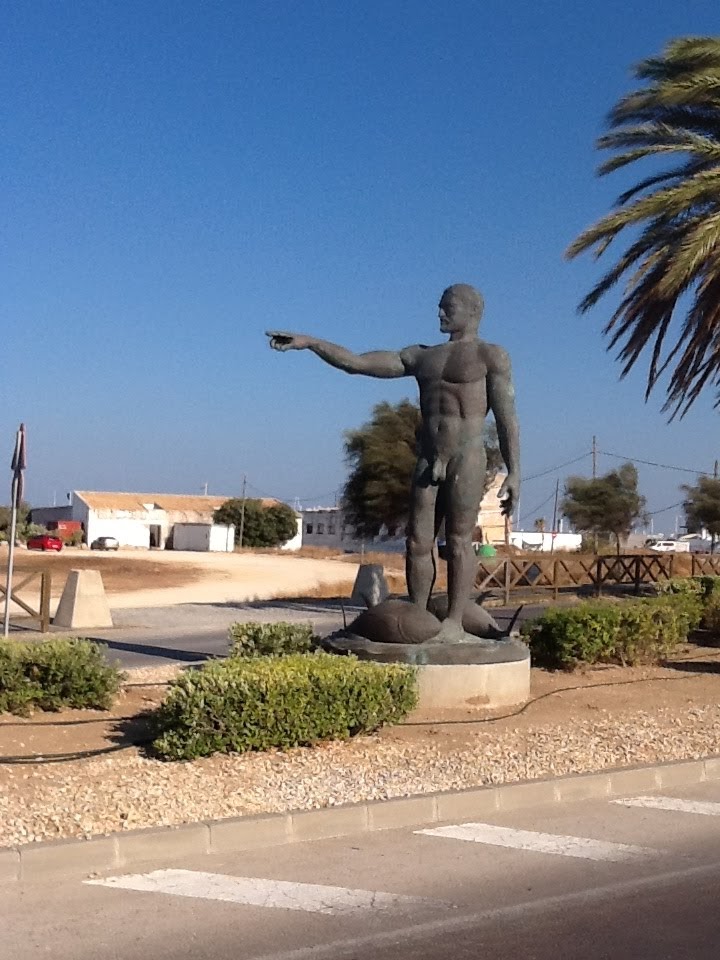 Para el último día de mi estancia de escasos tres días, llegué al mar, caminé descalzo en aquella arena embarcándome hacia Sancti-Petri. Comía luego en un lugar en el que trataba de juntar como niño de ciudad esas conchas o piezas de aquella experiencia. Conocí ahí una estatua de cuerpo entero de Heracles; cuenta la leyenda que por ahí estuvo haciendo algunos de sus trabajos; sus proporciones hacen ver bastante menor al célebre David; propondría luego a alguno de mis amigos la cuarteta para la estatua: “Exclama Heracles sin rubor, si ante su estatua usted cruza: “así me ha dejado señor, el garbo de la andaluza”.
