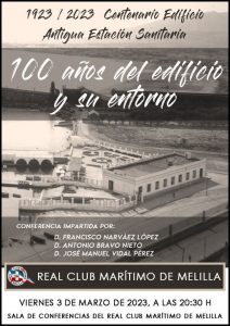 Mañana celebraremos el centenario de un edificio importante de la ciudad, la sede del Real Club Marítimo. A las 20.30 Francisco Narváez López, José Manuel Vidal Pérez y yo mismo impartiremos una conferencia sobre este evento. En mi caso, hablaré de las arquitecturas relevantes realizadas por los ingenieros de la antigua Junta de Fomento y del Puerto de Melilla.