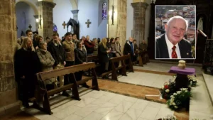 «Fue una gran suerte para Colunga tener a una persona como Fidalgo», destacó su amigo Caros Bada, que fue director del Instituto de Productos Lácteos de Asturias (IPLA) y concejal del PSOE en Colunga. «Fue un excelente profesor, para mí fue un excelente amigo y escribió sobre toda la parte desconocida de Colunga. Además, como persona era un encanto», resaltó Bada, quien recordó que Fidalgo y él organizaron múltiples actos, como los homenajes anuales a Francisco Grande Covián. Como antes había subrayado el sacerdote que ofició el funeral, Bada comentó que Fidalgo había sufrido un fuerte bajón emocional, primero, con la muerte de su único hijo en 2023, y después con la de su esposa, Alicia, el pasado mes de agosto.