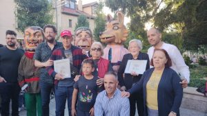Presentando los cabezudos recuperados de la comparsa original de 1962.