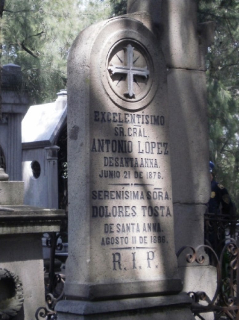 Yo te aconsejo que no te afanes demasiado, los locos desgastan bastante a quien debe soportarlos. A pesar de nuestra gran diferencia de edades, solamente le pude sobrevivir diez años. Si lo deseas, puedes visitar mi tumba y llevarme flores al Panteón del Tepeyac; hay una lápida que me recuerda: “Serenísima señora Dolores Tosta de Santa Anna”. Vieras que ni tanto…