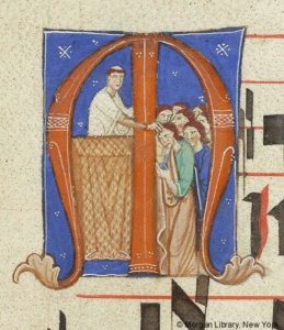 Celebración de la imposición de las cenizas, inicial m de un gradual, perugia?, c. 1260-1270, Morgan Library, m. 933, sí. 57 R, Nueva York.