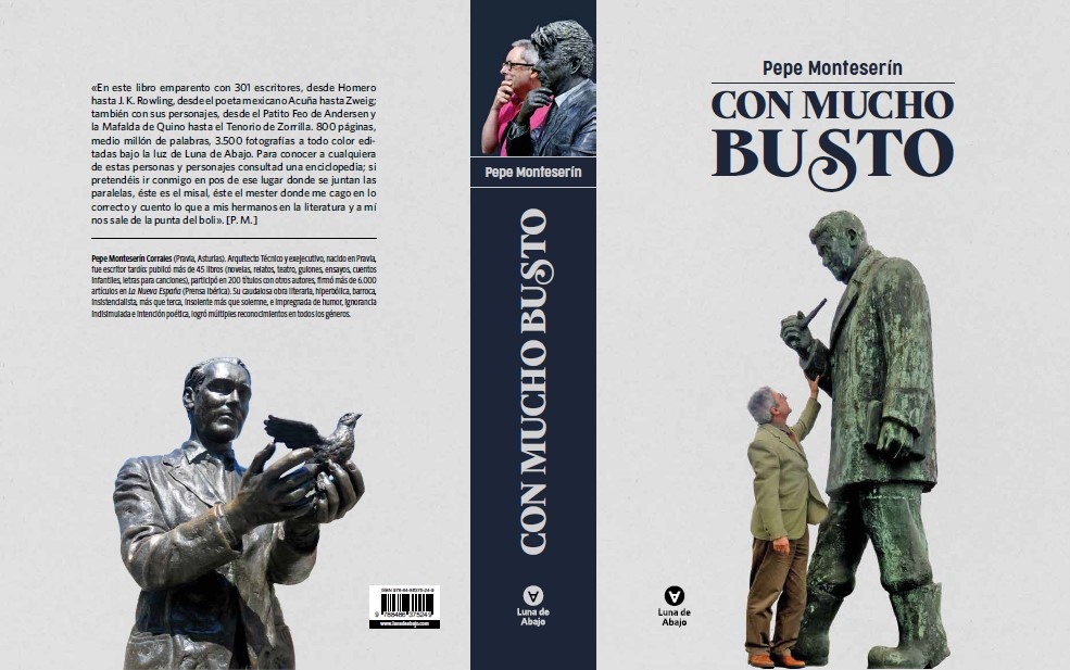 Os adjunto portada de mi libro, mi escorial, mi testamento literario, en el que algunos de vosotros colaborasteis. Mi encuentro con 301 estatuas de escritores de todo el mundo. 826 páginas, DIN A4, a todo color. Saldrá en junio y haré una edición muy limitada que no saldrá en librerías, venderé directamente a 50 euros y gastos de envío, muy por debajo del costo. Si os interesa decídmelo.