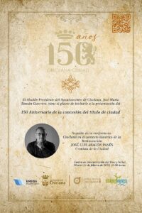 El cronista oficial de la ciudad, José Luis Aragón Panés, ofrecerá el próximo martes 24 de febrero una conferencia centrada en la concesión del título de ciudad a Chiclana, una distinción otorgada en 1876 y de cuya proclamación se cumplen 150 años en 2026.