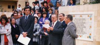 Entonces el promotor y el poeta decidieron destinar dicha cantidad recaudada, del orden de ciento sesenta mil pesetas (961,65 euros de ahora), a Cáritas Interparroquial a fin de auxiliar a las familias damnificadas de más necesidad. Tras ello, se pospuso la iniciativa y, por fin, el 28 de marzo del año siguiente, los versos de Más Nieves se incorporaron a la Plaza de la Anunciación, inaugurándose en un acto que contó con la presencia del alcalde Luis Fernando Cartagena Travesedo, del presidente del Consejo Rector de la Caja Rural Central Miguel Mazón Gilabert, y la intervención del Coro Mixto de la Catedral de Orihuela.