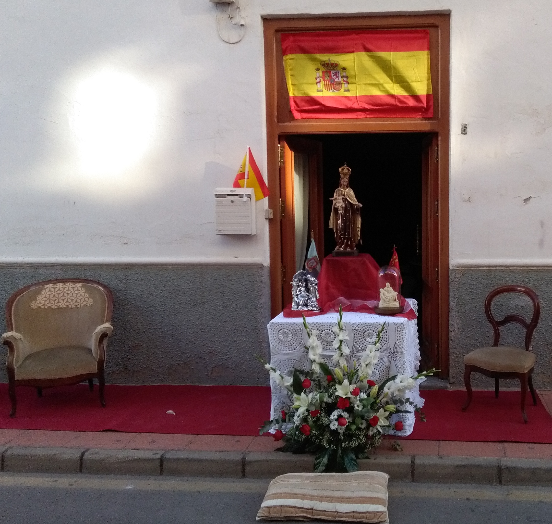 Como todos los años, mis hijos han montado un altar en la puerta de mi casa para lo que no han escatimado esfuerzo trayendo sus mejores bordados y adornos florales, sacando a la calle antiguas imágenes heredadas de sus antepasados, poniendo a contribución todo el fervor eucarístico tradicional en nuestra familia.