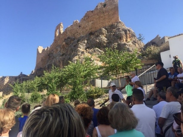 Valentina, representante del Ayuntamiento de Bedmar y Garciez junto al Cronista Oficial, dando comienzo al acto programado por CULVE2M19, que en esta ocasión estuvo dedicado a D. Juan “Perenales”, asistiendo a la visita, en representación de la familia su hermano Joaquín.