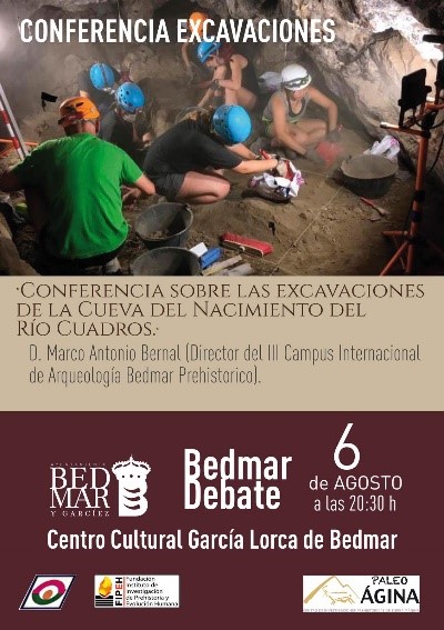 6/VIII/2019. Bedmar, también en arqueología, un paraíso por descubrir: Charla-Coloquio sobre los hallazgos encontrados en las excavaciones arqueológicas del Río Cuadros.- La conferencia sobre la Cueva del Río Cuadros, se realizó, dentro del CULVE 2019, a través de la -Asociación “Bedmar Debate”, que preside D. Fernando Viedma Fernández, en la Sala de Conferencias del Centro Cultural “García Lorca”, abarrotada de un público expectante, ante las explicaciones prometidas en la clausura del mismo, en la sede de la UNIA “Antonio Machado” de Baeza, por D. Marco Antonio Bernal Gómez, Director del Campo Internacional de Trabajo entre el 8/VII y el 2/VIII/2019, organizado por la UNIA y el Centro Paleomágina.