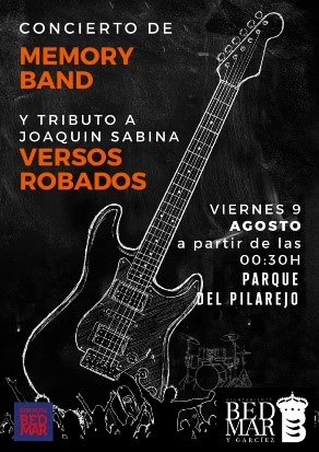 8/VIII/2019. Concurso de Ponche.- 9/VIII/2019. Día del Gran Tobogán Deslizante.- 9-10/VIII/2019. Concierto de Memory Band y Tributo a Joaquín Sabina: “Versos robados”, en el Parque de la Virgen de Cuadros o del Pilarejo y 10/VII/2019. Verbena en el Parque del Pilarejo.-