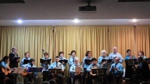 Y mientras, un serafín entre tantos ángeles, movía micrófonos y afinaba instrumentos, haciendo que el coro se sentara o se levantara, y el público aplaudiera o callara. Ángel es el motor de esta rondalla, director de todo y de cada detalle.