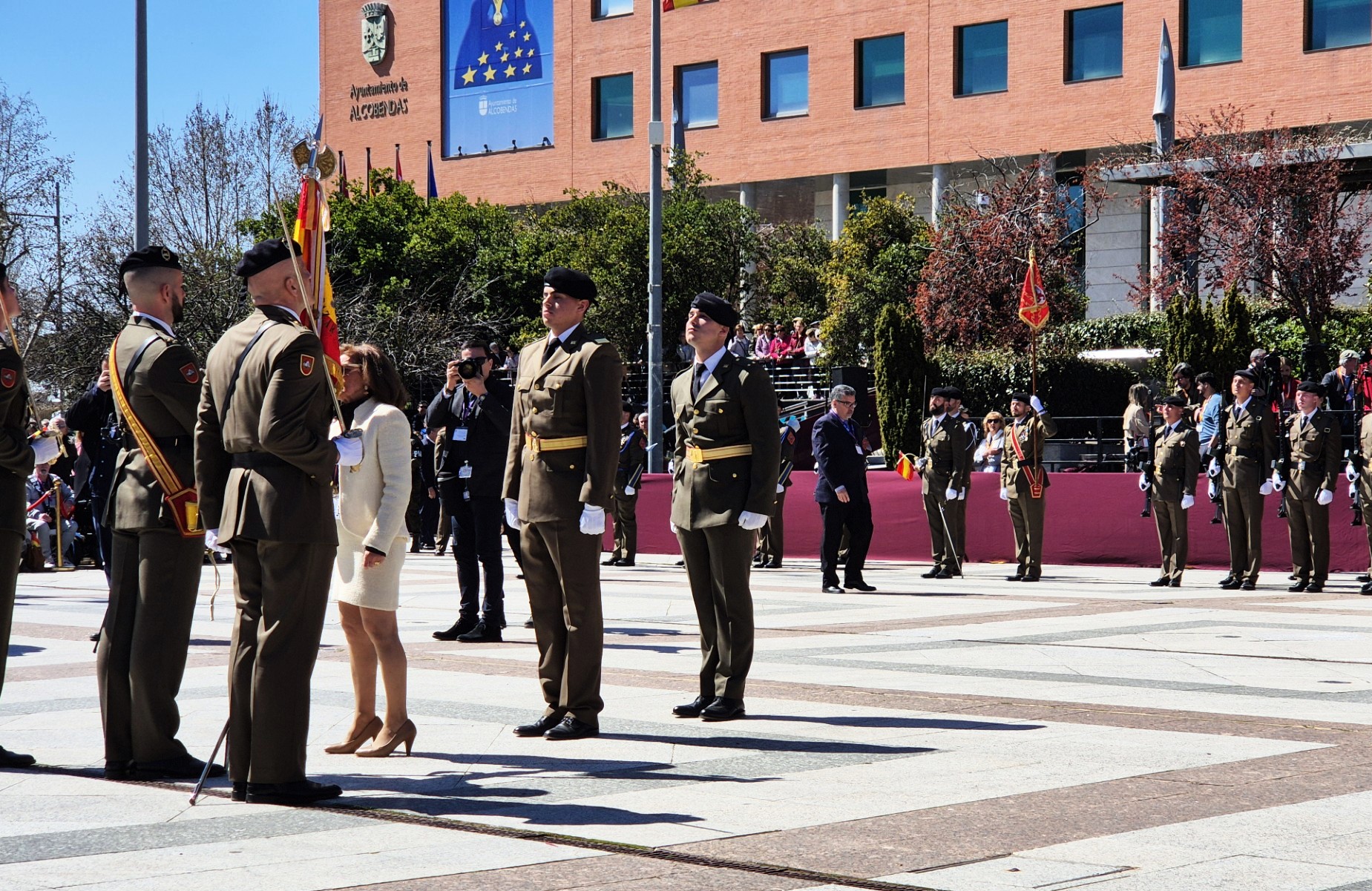 A su conclusión, los dos jurandos de mayor y menor edad depositaron una corona de laurel al pie del monolito con la llama eterna de homenaje a los caídos instalado en el flanco oriental de la plaza. Con el toque de oración y unas breves palabras del capellán castrense una salva de fusilería daba por concluido el acto, y la fuerza armada desfiló ante el general Bernal Martín que, tras descender de podio, saludó a la presidenta de la Comunidad de Madrid y a la alcaldesa de Alcobendas, para acto seguido dirigirse al estrado colocado en la Avenida de España desde el que presidió el desfile militar de las tropas desplazadas a Alcobendas, con lo que concluyó el acto militar.