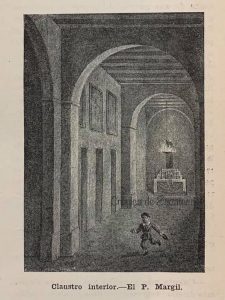 Litografía “Claustro interior [del Convento de San Francisco de la Ciudad de México]. El padre Margil”. 1904. Colección: Crónica de Zacatecas.