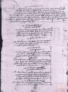 “En las Minas de los Zacatecas, en diez y seis días del mes de abril de mil quinientos cincuenta años, yo Alonso de Santacruz, alguacil mayor de las minas de los Zacatecas, por mandato del muy magnífico señor Licenciado de la Marcha, y visitador general por su majestad, en este nuevo Reino de la Nueva Galicia, me fue mandado contar todas las casas, e ingenios que están edificadas en estas dichas minas, que son las siguientes:
